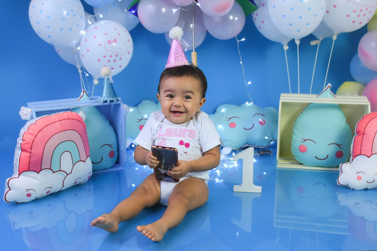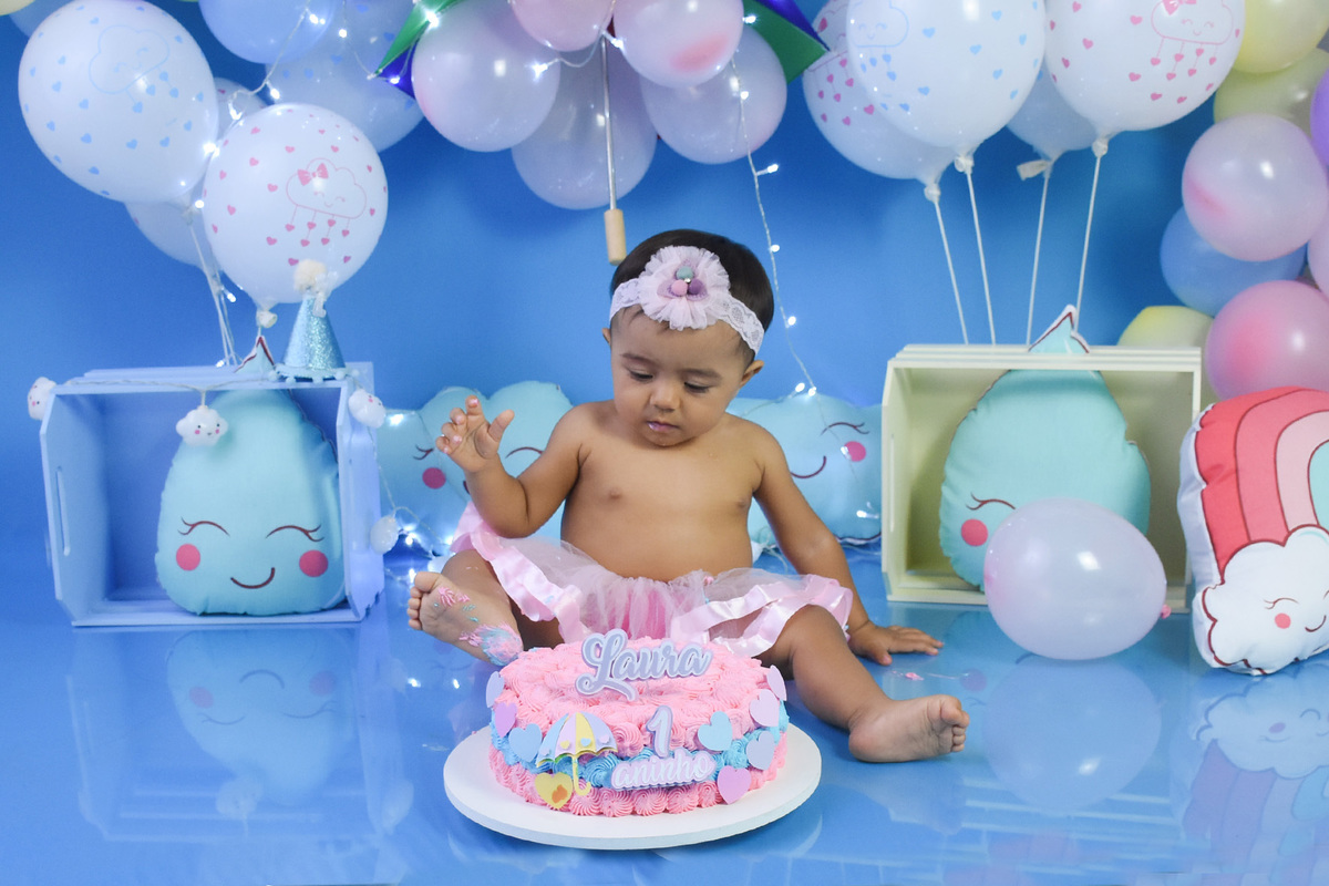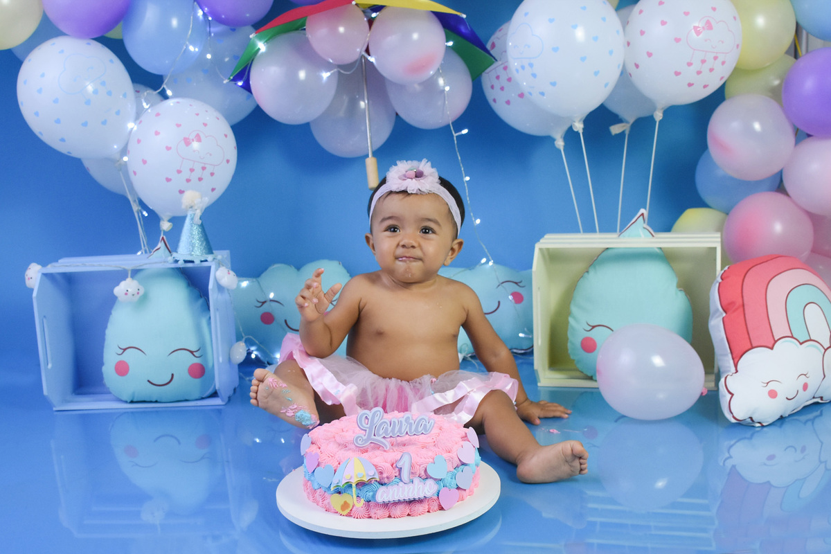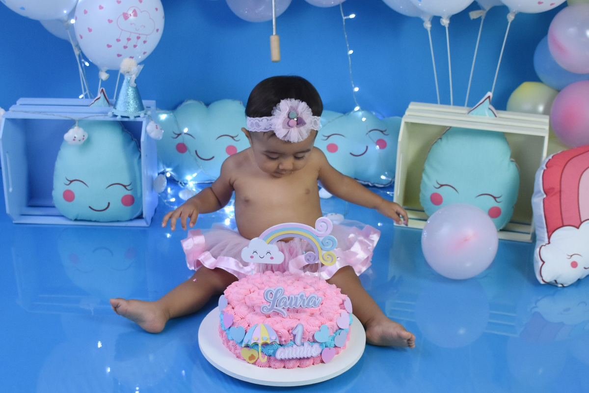 Smash the cake chuva de amor, com a Laura. Nossa princesinha do acompanhamento. Conhecemos a Laura com apenas 3 meses e foi 1 ano de muitos ensaios regado de carinho e alegria. Agradecemos aos papais Renata e João pela confiança em nós